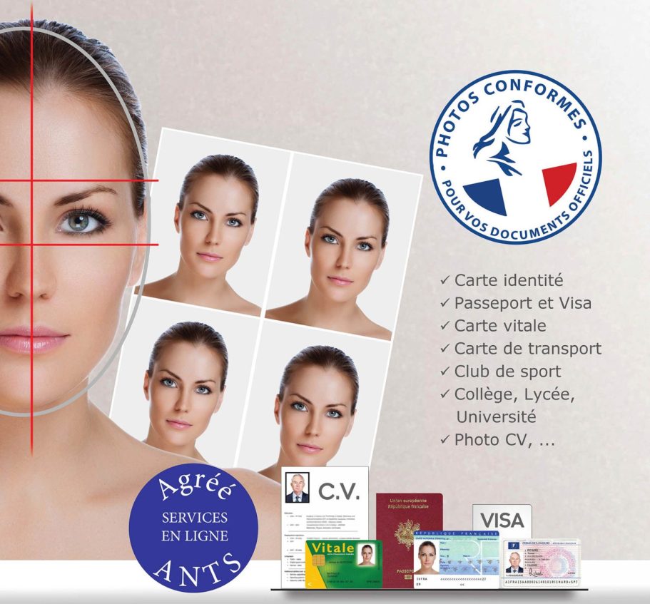 Photos d'identité ANTS agrées et conformes aux normes en vigueur pour tous vos papiers officiels (permis de conduire, carte d'identité, passeport, VISA).